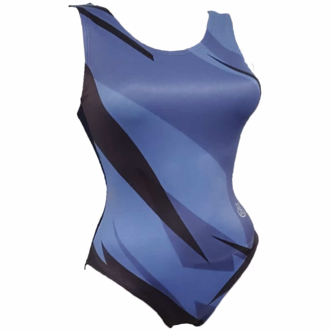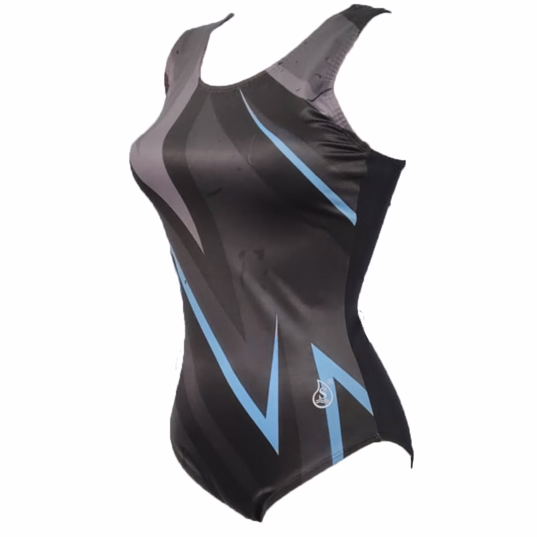 Vestido Olímpico sin copa, estampado según impresión digital, en Suprema, material para entrenamiento fuerte, forrado frontal, diseñado para competencia.
